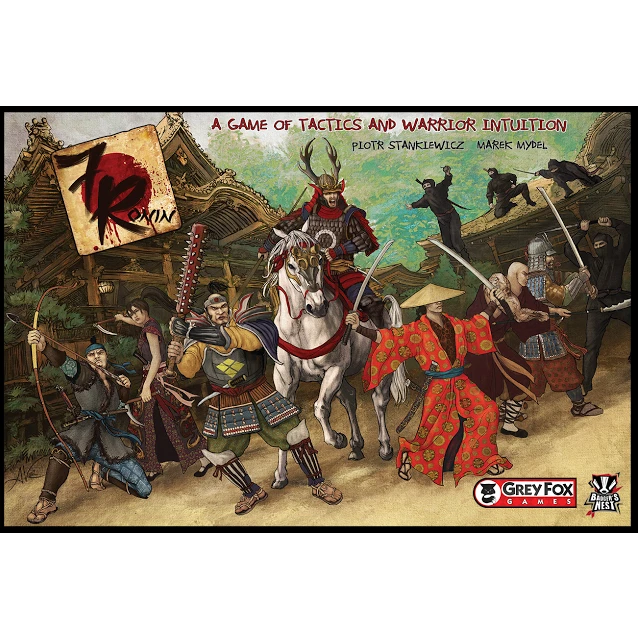 7 Ronin is an asymmetric two-player game in which one player controls a group of ninja attacking a village that’s defended by seven ronin (masterless samurai), which are controlled by the other player. The ninja player wins by occupying five of the village’s ten areas, while the ronin player wins by surviving eight rounds.