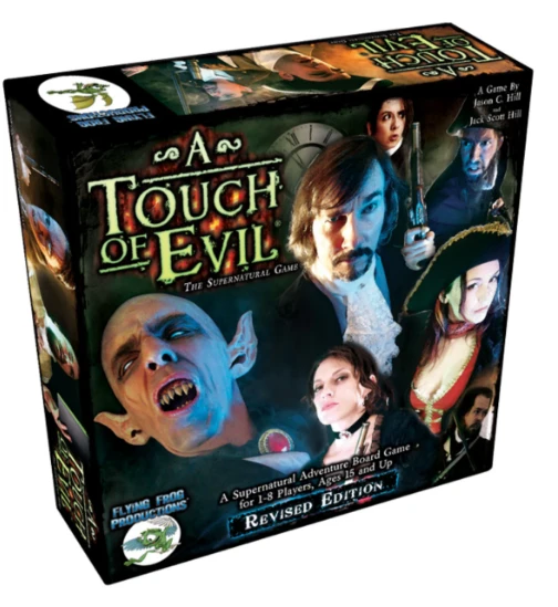 The classic supernatural horror game is back with a new revised edition! A fast-paced game of fiendish creatures, dashing heroes and high-adventure. Each player takes on the role of a unique monster-hunting Hero, racing to stop the forces of darkness. Only by investigating the town and building your hero’s strength can you hope to hunt down the supernatural villain to their lair and defeat them in an epic showdown! Choose from eight heroes to play and four different supernatural villains to hunt, each with its own powers and unique host of minions. A Touch of Evil is designed to create an adventurous cinematic feel as the story and game unfolds. Players can race competitively to be the first to defeat the villain and save the town, or they can work together cooperatively to defeat a much stronger villain! Includes rules for solo play, and a larger group of players can even compete in a team play game. This revised edition is fully compatible with all previous expansions.