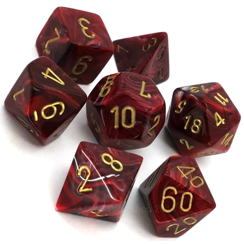 Dice set includes 7 dice: 1 d4, 1 d6 , 1 d8, 1 d10, 1 d12, 1 d20, 1 dPercentile.
