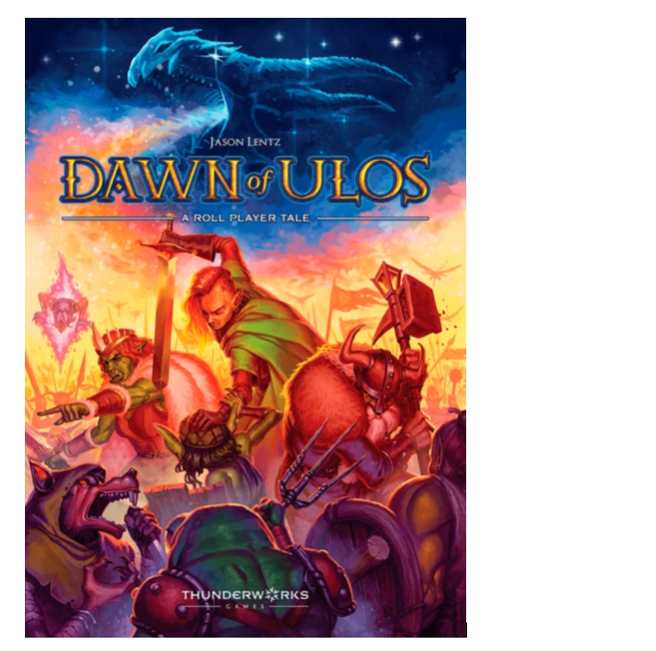 Dawn of Ulos is an economic tile-laying game for 1-5 players set in the world of Roll Player and Cartographers. You compete in a game among gods of the planarverse, wagering on and manipulating the rise and fall of mortals.