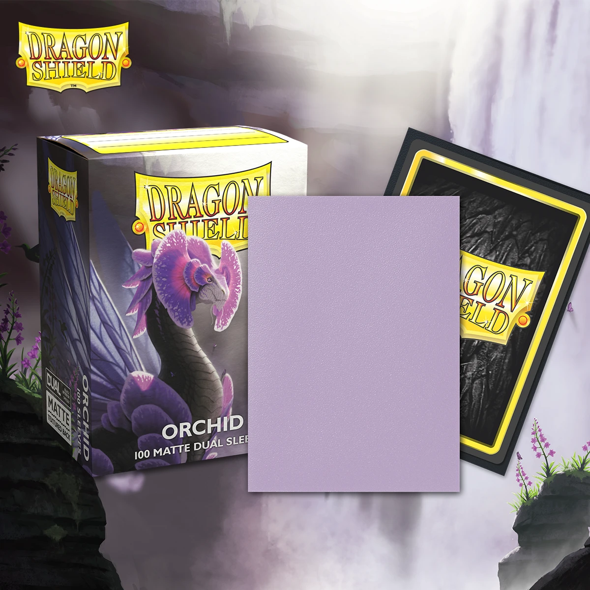 Dragon Shield Matte Dual sleeves. Clear front and a textured matte back. Fully opaque sleeves with a black interior, an elegant backdrop for black bordered cards.