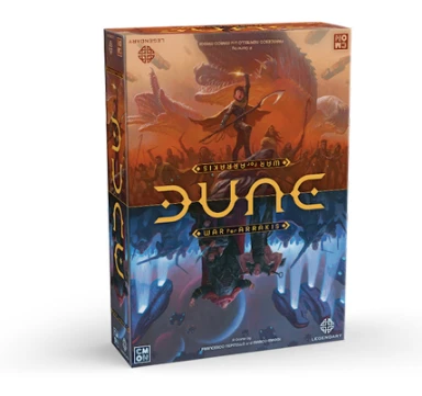 In this asymmetrical strategy game, players fight for control of the planet, manoeuvering troops like the Fremen, the Fedaykin and the fearsome Sardaukar, while sending Spice harvesters into the deep desert, daring to challenge the great Sandworms. The game features an action dice system with numerous event cards that will enable players to retell the Dune saga differently with each playthrough.