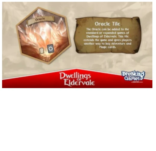 The Oracle Tile is a Ruin realm tile mini expansion for Dwellings of Eldervale, originally included in the Standard First Edition, now available separately in Second Edition. Included is only the tile. Rules for play are included in all versions of the rulebook.