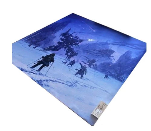 This natural rubber playmat for Expeditions has double-stitched edges for durability. It is double sided (one side with outlines for hexes, cards and basecamp, and one side just with art), and it fits the core components needed for a 5-player game (location tiles, basecamp and mech mats), with flexible positioning for various player counts and table configurations. It measures 900x900mm.