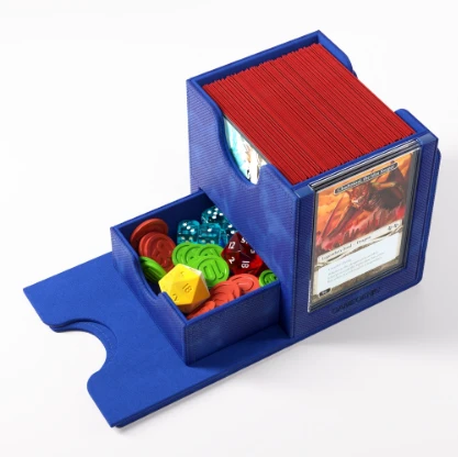 The Sidekick PRO holds 100 double-sleeved cards in extra Thick Inner Sleeves. It can also fit 100 regular double-sleeved cards and has extra room for token cards. This premium box is also equipped with our highly rated convertible system: The completely removable cover clips onto the bottom, saving precious space on the gaming table. The Sidekick PRO is available in all 5 colours used in Magic: The Gathering™.