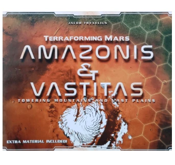 - Amazonis Planitia – An expanded board with 30 additional hex spaces on Mars, 2 extra ocean tiles and longer terraforming tracks to support massive 5 player games.