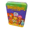 Each player selects a colour (publicly announced) and then the entire deck is shuffled, and each player is dealt four cards from the deck (they may get cards of their own colour, they may get cards of their opponent’s colours). On your turn, you draw a card from the pile and then place a card onto the board. The card placed on the board must match the card/illustration of the card it is placed onto (cards feature illustrations of characters, creatures and objects from The Dark Crystal). The cards all have values of 1, 2, 3 and 5 on them. When a “Sun” card is played (on a player’s turn), all visible cards are scored per suit/color (the “Sun” card may also be countered by a “Stop Sun” card).