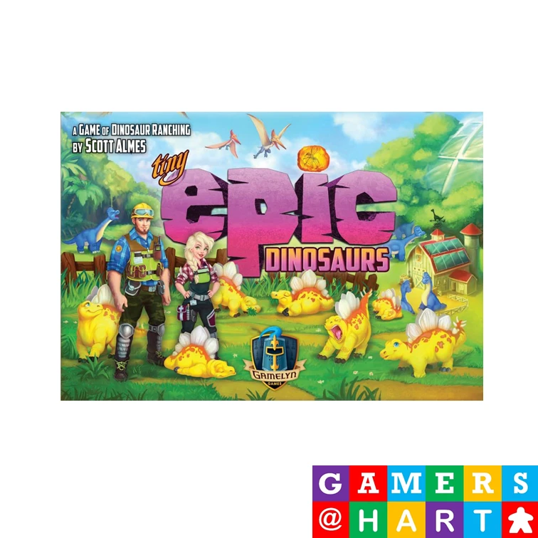 Tiny Epic Dinosaurs is a 45 minute, 1-4 player game of dinosaur ranching, worker-placement and resource management. It features classic euro game mechanics with unique twists that portray the dangers of farming these prehistoric beasts.
