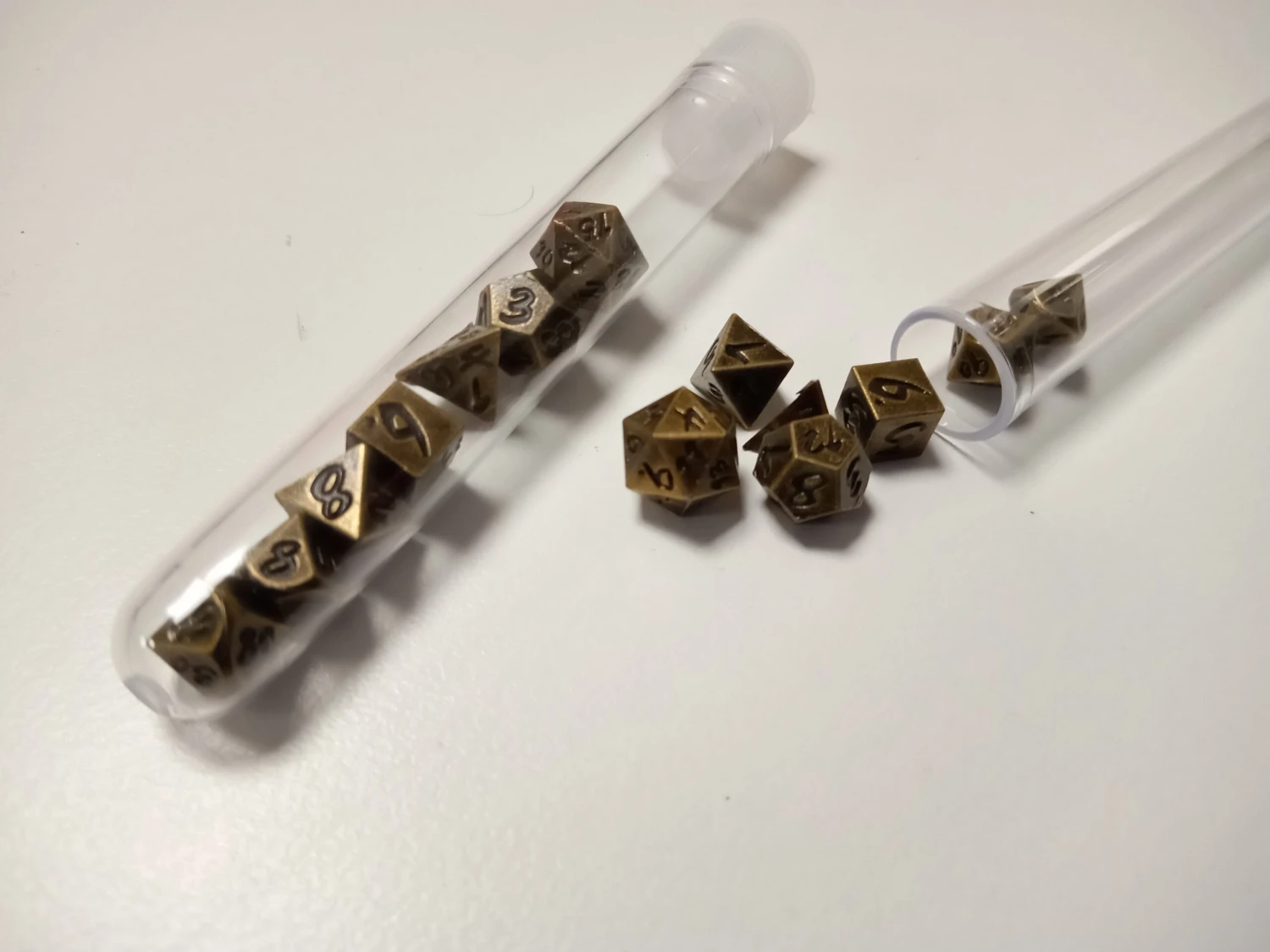 RPG dice sets – 7 different size dice in a test tube – 5mm to 8mm